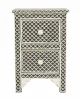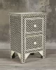 Crafted with utmost precision and dedication, the Bone Inlay 2 Drawer Bedside Table is a manifestation of artistry that transcends time. Each intricate design and pattern is a result of meticulous handwork by skilled artisans, reflecting the heritage of Indian traditional handicraft. The delicate bone inlay, adorning the surface, forms an ethereal mosaic that tells a story of culture and creativity.