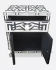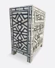 The bone inlay bedside black is a stunning piece of furniture that adds a touch of sophistication and style to any bedroom. Crafted by skilled artisans, this bedside table features intricate designs made from small pieces of bone embedded in a black base material. The contrast between the black background and the white bone inlay creates a striking visual effect that is both modern and timeless. The bone inlay bedside black is not only beautiful but also functional, with a spacious drawer and a lower shelf that provides ample storage space for your nighttime essentials. Each bone inlay bedside black is a unique piece, showcasing the artistry and craftsmanship of the maker. This exquisite piece of inlay furniture is sure to become a focal point in your bedroom. Also, check out mop inlay moroccan bedside, mop inlay bedside table, and mother of pearl inlay bedside.
