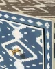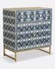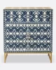 The bone inlay blue cabinet is a stunning piece of furniture that is sure to add a touch of elegance to any room. Crafted by skilled artisans, this cabinet features intricate patterns and designs made from a variety of materials such as wood, bone, and mother of pearl. The rich blue color of the cabinet is eye-catching and adds a pop of color to any space. The cabinet is not only beautiful but also functional with ample storage space for your belongings. The doors and drawers are easy to open and close, and the cabinet is sturdy and built to last. This bone inlay blue cabinet is perfect for those who appreciate unique and high-quality furniture. Also, check out three drawer dresser and mother of pearl inlay drawer.