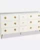 A bone inlay white sideboard is a beautiful piece of furniture that will add a touch of elegance to any room. The intricate and delicate designs are crafted by skilled artisans who embed small pieces of bone on a wooden base, creating a beautiful and unique piece that catches the eye. The black color of the sideboard creates a dramatic backdrop for the white bone inlay, creating a striking contrast that adds depth and dimension to the piece. The bone inlay white sideboard is not only beautiful but functional as well, providing ample storage for your belongings. The drawers are spacious and well-designed, making it easy to organize and store your items. The sideboard is also versatile and will fit in any room of your home.