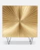 This brass storage cabinet is a unique and stylish addition to any bedroom. One of the primary benefits of this type of high-end furniture is its durability and sturdiness. Brass is a highly durable material that is resistant to corrosion and tarnishing, making it an excellent choice for traditional furniture that will last for years. The striking sunburst design of the luxury living room cabinet makes it a perfect fit for those who appreciate traditional and modern styles. We craft each handcrafted cabinet with a high level of expertise and skill. With its sturdy construction, a brass storage cabinet is an excellent investment that will enhance the beauty and functionality of any home with its bedroom furniture and living room furniture.