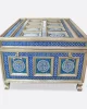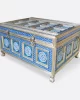 This meenakari jewelry box is a unique and stylish addition to any bedroom. One of the primary benefits of this type of furniture is its durability and sturdiness. German silver is a highly durable material that is resistant to corrosion and tarnishing, making it an excellent choice for furniture that will last for years. The striking geometric and floral design of the box makes it a perfect fit for those who appreciate traditional and modern styles. Each box is unique and has been crafted with a high level of expertise and skill. With its sturdy construction, stunning design, and versatility, a meenakari jewelry box is an excellent investment that will enhance the beauty and functionality of any bedroom.