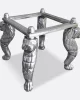 German silver furniture, white metal-fitted, and brass clad furniture have become increasingly popular in recent years due to their unique aesthetic appeal and durability. Take your home decor to the next level with our luxury furniture collection. German silver clad furniture, made by covering thin sheets of German silver, silver, brass, and copper on wooden furniture articles. This process requires immense skill and practice to give any article a delicate design. People highly seek teakwood as a material for furniture due to its natural beauty and durability. Moreover, teakwood has a unique grain pattern that adds to its aesthetic appeal. Using teakwood for cladding furniture provides the added benefit of a sturdy base for the German silver cladding.